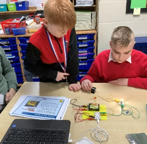 Year 5 have had a fantastic time exploring circuits and simple programming using our Crumble kits. Working confidently in groups, they have built their own circuits, programmed different lights to turn on and off, and even created colourful moving spinners.