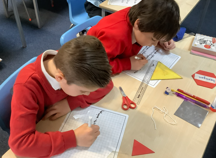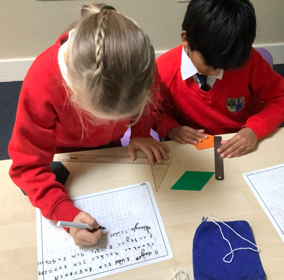 In maths, we have been learning how to calculate the perimeter of different shapes. We enjoyed using string to measure around the edges of shapes before carefully measuring the length with a ruler and adding the sides together to find the total perimeter.