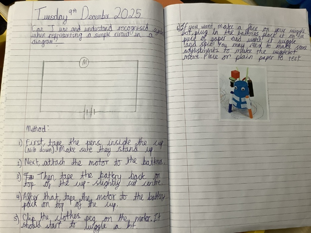 Anish investigated how to make a ‘scribble-bot’ using an electrical circuit, a plastic cup and marker pens. He had to work collaboratively throughout the process and adapt his thinking to make the ‘scribble-bot’ draw without being held by anyone. |